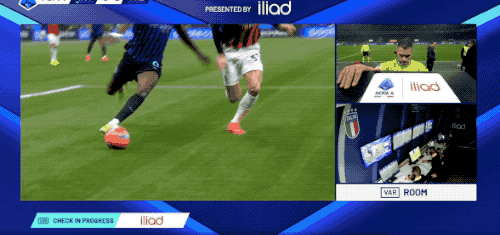 第70分钟,帕夫洛维奇在禁区内踩到了已经出球的小图拉姆,VAR介入,裁判判罚点球。