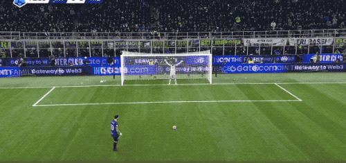 恰尔汗奥卢面对旧主,他的点球没能打出角度,迈尼昂判断正确,奋力将球扑出。