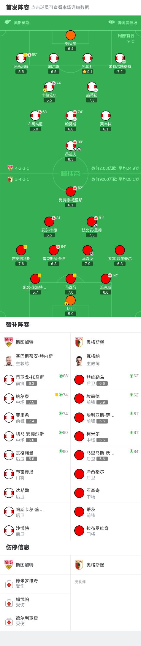 斯图加特3-2逆转奥格斯堡,昂达夫梅开二度,米特尔施泰特点射